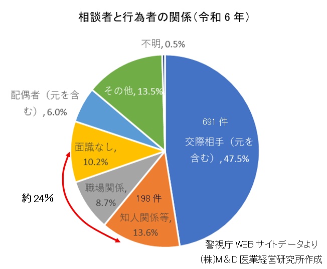 歯科医院での治療者と患者に類する関係性に近い「面識なし」が10.2%、「知人関係」が13.6%で、合わせて約24%と約4分の1を占めており、恐ろしいデータである。